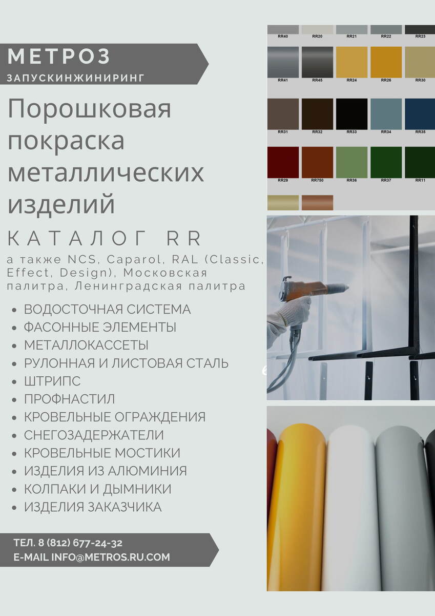 Обращайтесь по телефону +7 (812) 677-24-32 или оставляйте заявку на почте info@metros.ru.com и мы подберем Вам краску в цвет каталога.